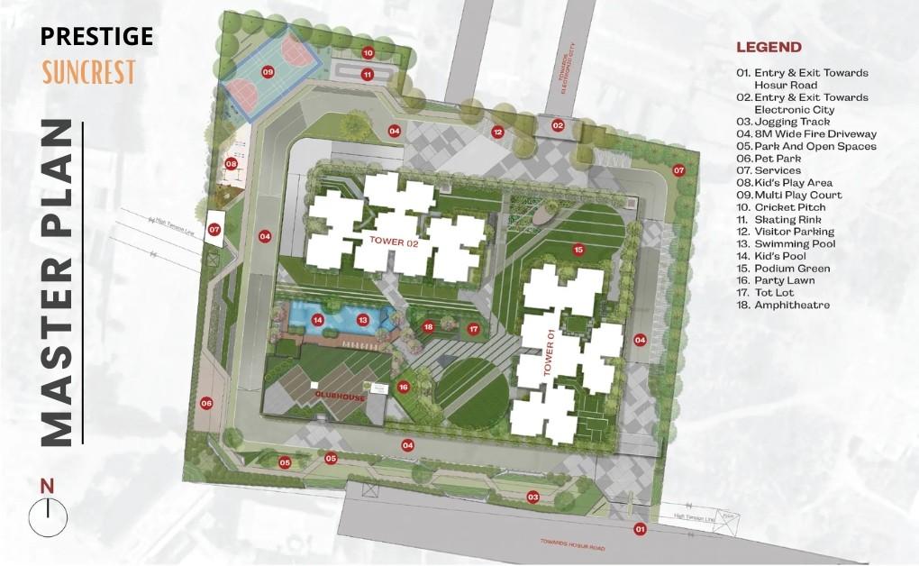 Welcome to Prestige Suncrest, a thoughtfully crafted residential community spread across 6 acres in the heart of Electronic City. Designed with comfort and modern living in mind, it offers spacious 1, 2, and 3 BHK apartments across two elegant towers – perfect for families, professionals, and first-time homeowners alike.